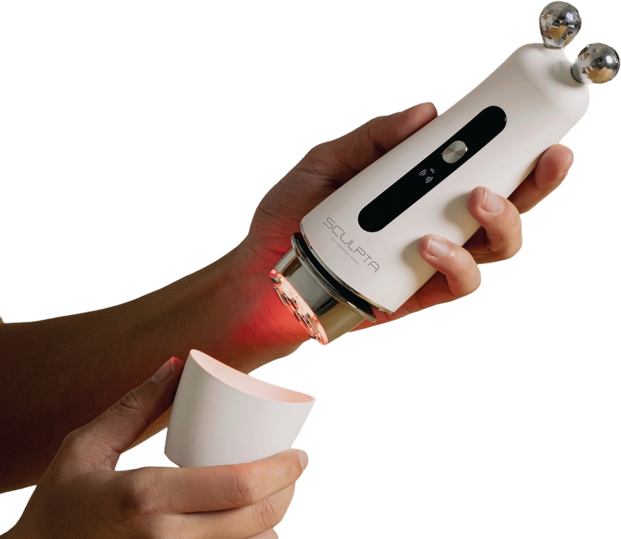 Sculpta by Déesse PRO nutzt die Kraft der TriGen-Technologie und kombiniert drei klinisch erprobte Energieformen: elektrische Muskelstimulation (EMS), Radiofrequenz (RF) und Rotlichttherapie mit LEDs, um ultimative Ergebnisse bei der Gesichtsverjüngung zu erzielen und eine optimale Hautgesundheit zu fördern.