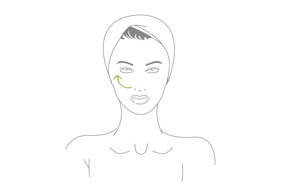 Moving up to underneath the eye, using very light pressure, sweep the bone working outwards. Repeat three times.